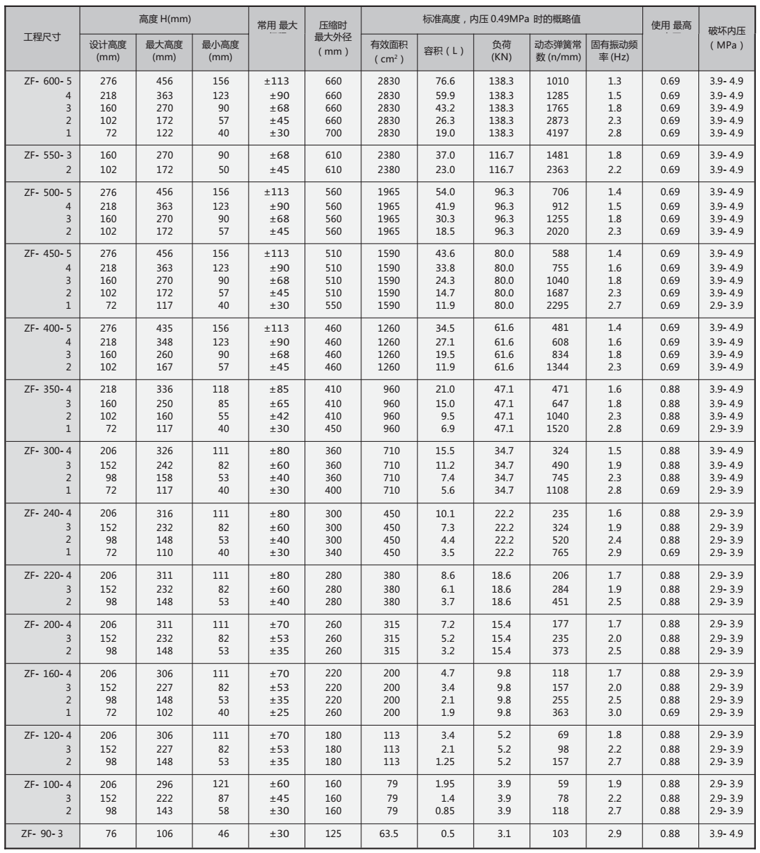 ZF型自封式橡膠氣囊(沖床設備專用)介紹: