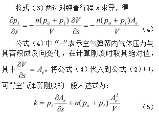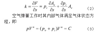 通過(guò)承載力F對(duì)彈簧行程s求導(dǎo)可得空氣彈簧剛度k。